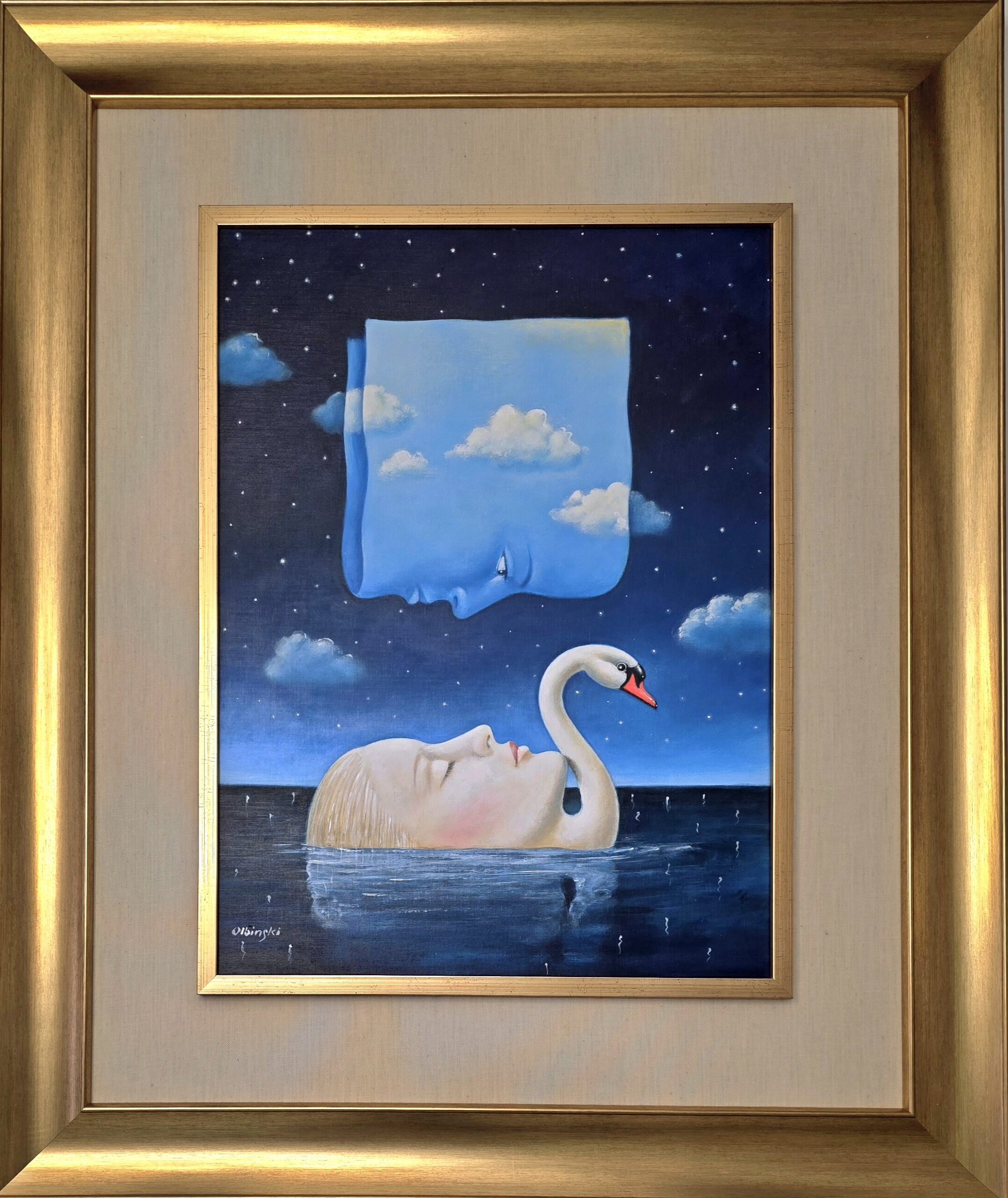 RAFAŁ OLBIŃSKI 'Leda z Łabędziem’, olej, płótno, 110x55cm