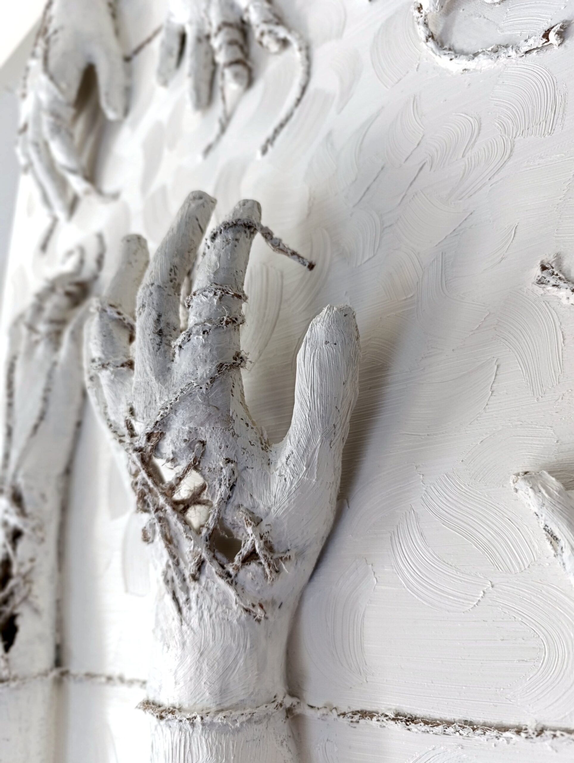 GAYA LASTOVJAK 'Zmowa’ 2020, 90x120x14cm, technika własna, papier mache, sznur, płótno, farba olejna