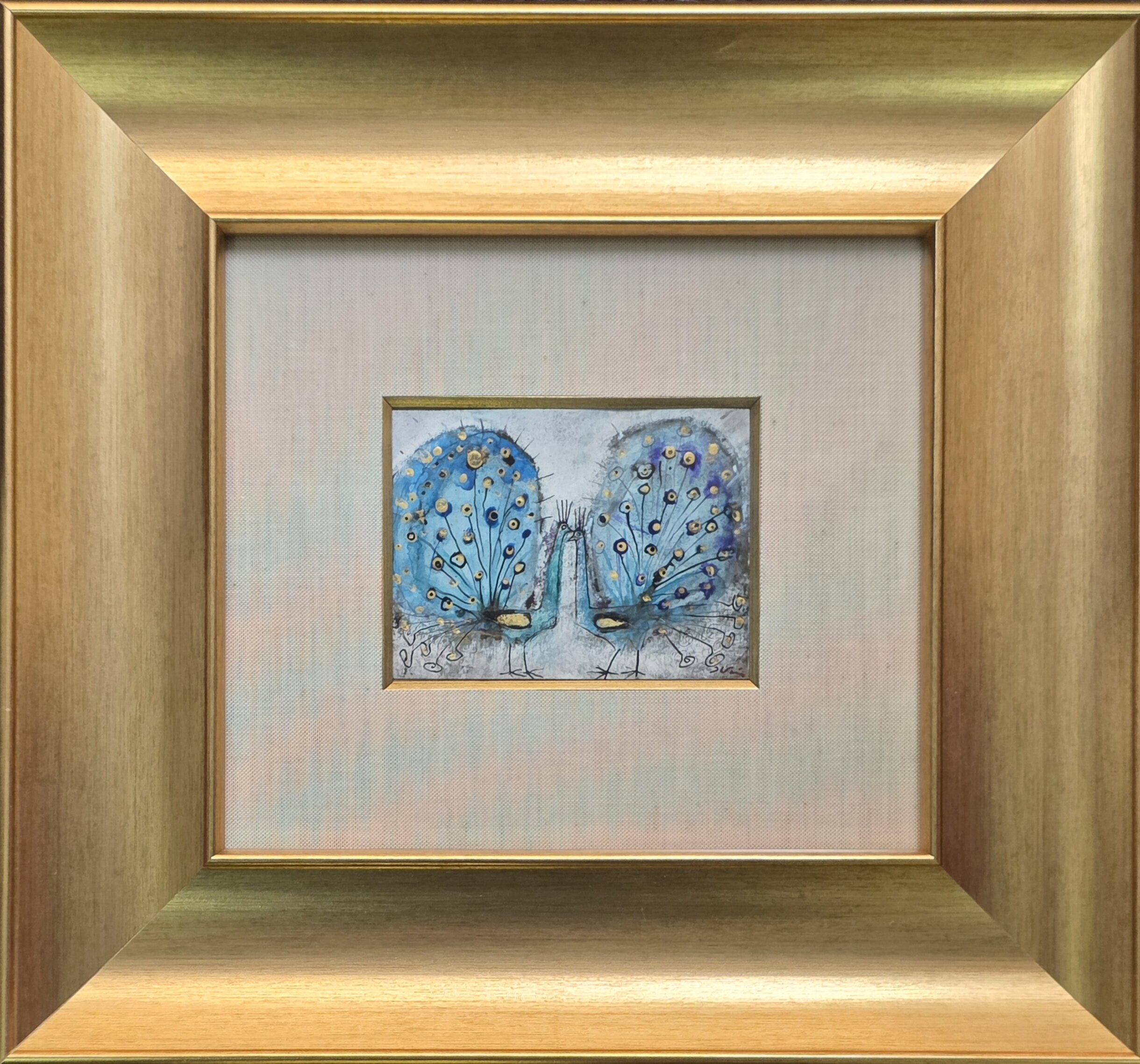 JÓZEF WILKOŃ 'Pawie dwa’ technika własna, papier, 9x13cm – Rezerwacja