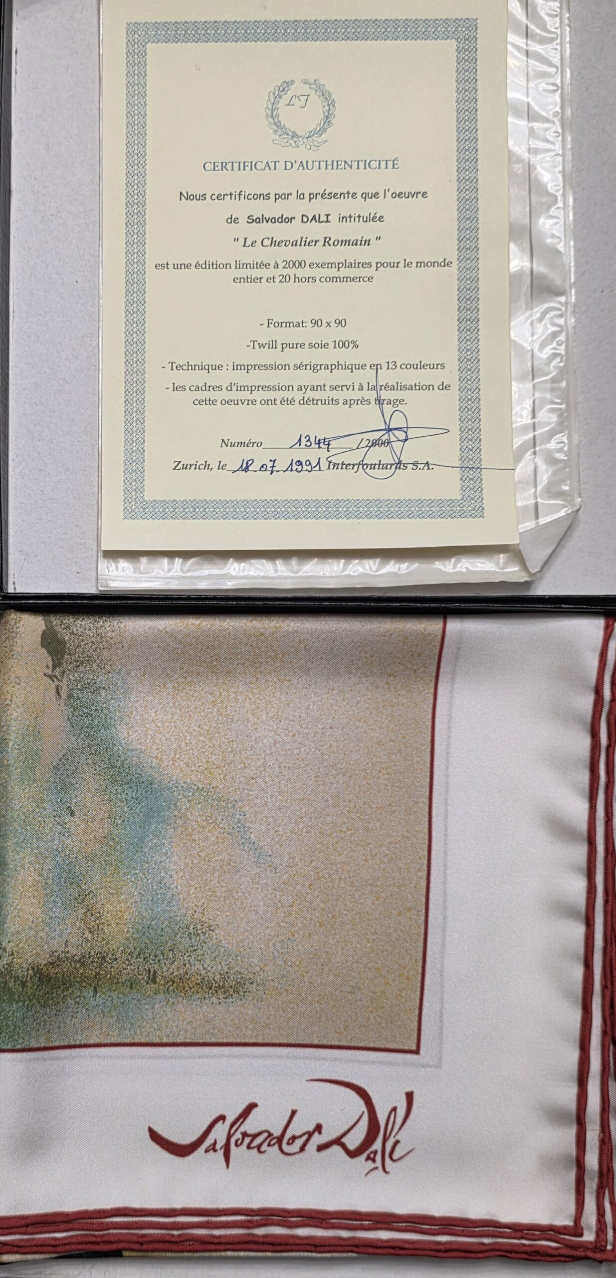 SALVADOR DALI 'Le Chevalier Romain’ Chusta jedwabna, 90x90cm limitowana edycja